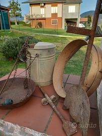 Antica bilancia stadera in ferro euro 30,00 Vecchio annaffiatoio in zinco euro 20,00 Setaccio in legno di una volta euro 10,00 - GIA VENDUTO Antico tagliafieno in ferro battuto euro 10,00 Antico incudinetto battifolle euro 10,00 Vendo pezzi singoli o tutto insieme a euro 60,00 euro