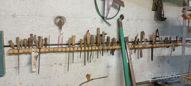 Cedo antichi attrezzi per esposizione quali rastrelli, pale, picconi, zappe, lime, falci, punzoni, scala in legno da circa 3m. Cedo in blocco o singolarmente nella condizione in cui si trovano. Ritiro in loco