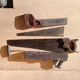 Antichi attrezzi per falegnameria due seghe a legno una lama di ricambio una pialla e due secchielli tutto in ottimo stato considerando che sono attrezzi dei primi anni del secolo scorso vendo tutto complessivamente no singoli pezzi