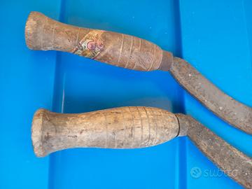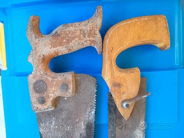 due falci e due seghe x lavoro legno entrambi antiche naturalmente con segni di rugine