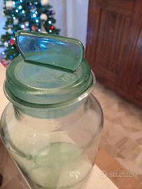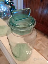 antichi barattoli in vetro uno alto cm. 26 l altro cm 32 completi di tappo molto belli il vetro azzurro chiaro spedisco con poste italiane...