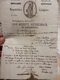 Antichi documenti della Repubblica alpina di inizio 1800 Circolari delle municipalità di Forlì Forlimpopoli Bertinoro