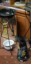 antichi lavabi in ferro con vaschetta , brocca o brocchino , il prezzo é per il singolo pezzo, tutti insieme con tutti gli accessori euro 150