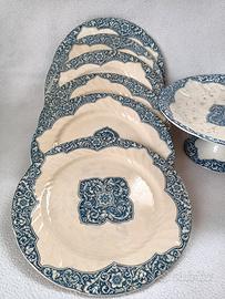 Lotto di 12 piatti con alzata frutta in antica ceramica di Gien.
