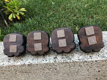 N.4 piedini leonini in legno per restauro mobili Dimensioni: 9x8x h 7 cm a cui si aggiunge perno diametro 1,5x h 2 cm