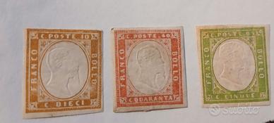 3 francobolli nuovi linguellati degli Antichi stati italiani Sardegna. Sono tutti classificati- vedere fotografie! Ottimi margini- Cart.