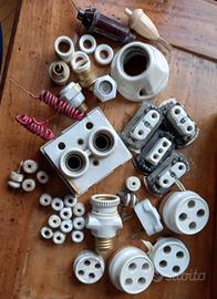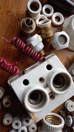 Epoca prima metà del 900. Autentici, In ceramica, con parti in legno, in metallo e altro materiale d'epoca (vedi i due pomelli interruttori)