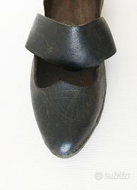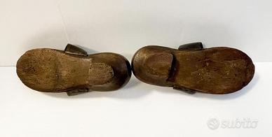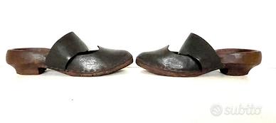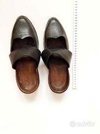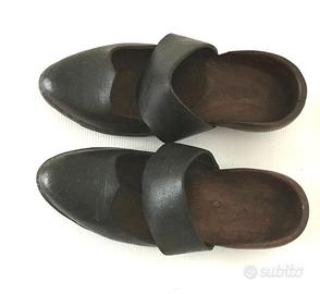 Antichi zoccoli da donna in legno e pelle, tradizionali sabot francesi dal