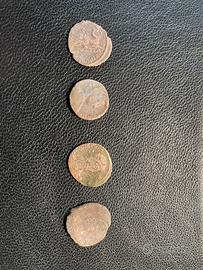 Gruppo di 7 antichissime monete romane tardo imperiali, Storicamente importanti, di Figli di Costantino, Valentiniano, Centennionali, ecc. purtroppo in stato di conservazione basso. Più una greca molto più recente (10 lepta di fine 800)
