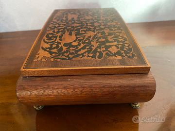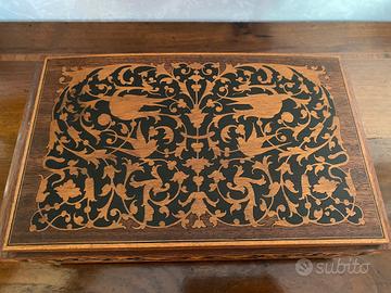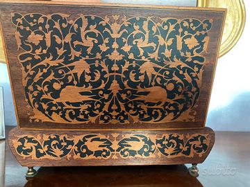 Bellissimo porta gioie sorrentino in legno tutto intarsiato con legni pregiati come ebano ed acero.
