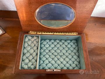 All'interno c'è un rivestimento imbottito in raso con specchio e carillon perfettamente funzionante. Manca chiavetta per chiusura.