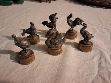 bellissimi segnaposti vintage realizzati in peltro su base di ottone. Altezza 4 cm in ottimo stato vendo