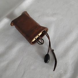 Antico affila lamette completo di custodia in pelle in buone condizioni come da foto