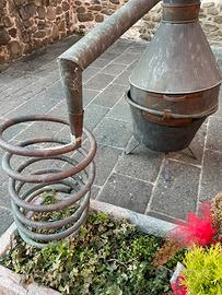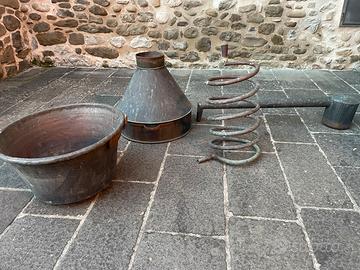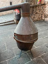 Grande alambicco in rame scomponibile in quattro parti, oggetto molto scenografico da inserire in una vecchia cantina o negozio specializzato. Solo ritiro a mano presso il venditore.