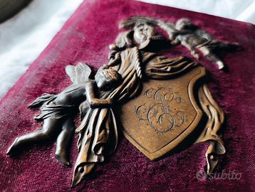 Antico album fotografico Vittoriano con stemma di due angeli in bronzo Senza fotografie Si puo' ritirare a Villa Torlonia
