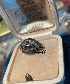 Antico anello autentico in oro 18kt argento diamanti vecchia miniera (due) e un rubino naturale misura dito 13 scatola non compresa
