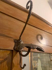 Antico attaccapanni da ingresso, primi 900, in legno e metallo