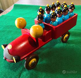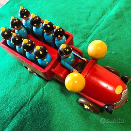 Bowling / Birilli - Gioco in legno composto da Camion completo di 10 figure Vigili del Fuoco o Poliziotti, 2 palline gialle. Gioco originale perfetto.