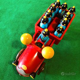 Bowling / Birilli - Gioco in legno composto da Camion completo di 10 figure Vigili del Fuoco o Poliziotti, 2 palline gialle. Gioco originale perfetto.
