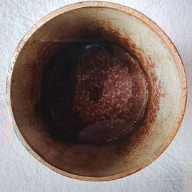 Vecchio Barattolo porta thè in metallo pesante, la parte esterna e arricchita con incisioni orientali credo Cinesi si vedono dei Bamboo un Martin pescatore con pesce in bocca un airone una luna o sole con uccello stilizzato, sul coperchio ci sono incisi dei Bamboo e sempre un airone che aspetta la preda nel laghetto...sotto la base e in legno, c'è un marchio e una scritta DEPOSE con un numero 143 credo che sia anni 30/40 e molto bello per via delle incisioni...la parte interna presenta segni del tempo vedi foto...misura h. 12 cm. Diametro 10 cm. Peso 1.2 kg. Posso inviare altre foto e video SPEDIZIONE A CARICO VOSTRO ritiro a mano a Parabiago