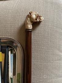bastone antico da passeggio con testa di cane Boxer in materiale pregiato databile metà 800. Probabilmente la parte inferiore in legno è stata aggiunta ai primi del 900 .