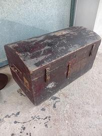 vendo antico baule in legno con etichette di spedizione originali del tempo