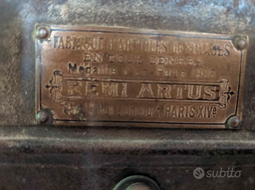 Un vero pezzo di storia! Questo baule non è solo un contenitore, ma un viaggio nel tempo. Proveniente da Parigi, con inserti in pelle e legno pregiato, e una medaglia d'oro "Rêmi Artus 1800" a certificare il suo valore storico.