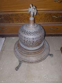 Vendesi raro braciere monumentale realizzato interamente in ottone massiccio. Un oggetto d'arredo di straordinaria eleganza, caratterizzato da una grande cupola finemente traforata con decorazioni floreali che poggia su una base circolare sostenuta da tre maestosi piedini a zampa di leone. Il pezzo è completato da un raffinato pomello apicale raffigurante un'aquila ad ali spiegate. Dettagli: Materiale: Ottone/Bronzo con patina originale. Stile: Neoclassico / Impero. Lavorazione: Traforatura artigianale e fusioni di pregio (piedini e aquila). Stato di conservazione: Integro, con i segni del tempo che ne attestano l'autenticità. Struttura molto solida e pesante. Dimensioni: (Inserire altezza e diametro se possibile). Destinazione: Ideale come complemento d'arredo di lusso per saloni storici, baite, loft in stile industrial-chic o per collezionisti di metalli d'arte. Disponibile per ritiro a mano a Messina.