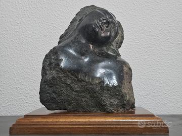 Antico Busto in pietra Scultura Femminile di inizo 900 Misure escluso base 23x20 cm Firma di lato ( indecifrabile)