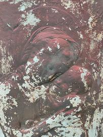 Calco scultura in gesso antica di Madonna con bambino Presente una patina di colore rosso Dim cm 66x38
