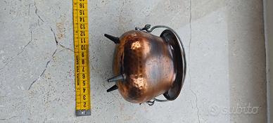 Antico Calderone Rame Martellato Tre Piedi - Vinta