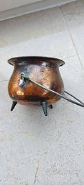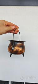 "Mini calderone vintage in rame martellato a mano con manico e tre piedini. Ideale come portapiante, svuotatasche o decorazione rustica per cucina/camino. Pezzo autentico con splendida patina del tempo. Le dimensioni sono visibili scorrendo le foto. #vintage #copper #rame #cuivre #cobre #cauldron #antiquariato #rustico #homedecor #shabbychic #vintedfrance #vintedspain #wallapop #coppermartellato #boho #industrial"