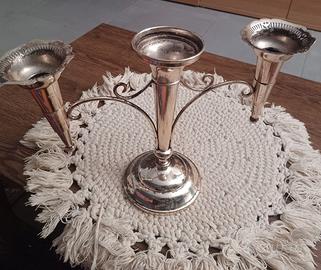 Antico candelabro a 3 fiamme in metallo argentato