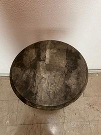 Antico candelabro/ candeliere in legno intagliato, laccato e dorato (probabilmente XVIII secolo). Originariamente utilizzato per sostenere candele è stato trasformato nel tempo in un tavolino rotondo. Base triangolare scolpita con piedi a forma di leone e fusto scanalato e decorato. Alcuni segni di usura nel tempo, dovuti all'antichità dell'oggetto