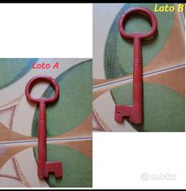 Antico catenaccio o lucchetto in ferro , Siciliano e risalente al 1800 Integro e con chiave femmina lunga 15 cm Su una foto viene mostrato il paragone con le dimensioni di una mano. (La chiave è quella originale ed è stata pitturata di rosso.) Si trova in Sicilia e in provincia di Ragusa