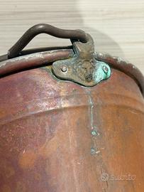 Antico e caratteristico catino in rame pesante. Diametro 26cm. Altezza 24cm