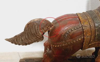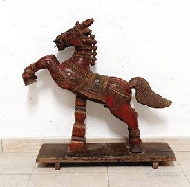 vendo 1 cavallo indiano antico in legno dipinto, secolo XVIII / XIX Rajasthan India (riporto quanto scritto sull’etichetta posta sotto alla base)