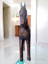 Antico grande Cavallo Indiano Scultura in legno massello figura statua artigianale risalente ai primi del XIX secolo