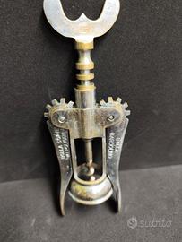 Antico Cavatappi raro made in Italy, con inciso Bolle Soave Valpolicella e Bolle Bardolino, in ottone cromato.