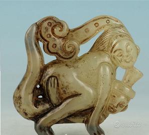 Antico ciondolo/pendente in giada fatto a mano Cina post 1900.
