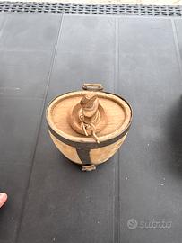 Bellissimo contenitore da latte d’epoca in legno, con cerchi in ferro e tracolla originale, risalente ai primi del ‘900 circa. Oggetto autentico della tradizione contadina, usato per il trasporto di latte o altri liquidi. Ha una splendida patina naturale che lo rende perfetto come elemento d’arredo in ambienti rustici, taverne, agriturismi o case di campagna. ✔️ Struttura in legno solida ✔️ Cerchi in ferro originali ✔️ Tracolla in tessuto ancora presente (difficile da trovare) ✔️ Coperchio in legno lavorato Condizioni buone considerando l’età, con normali segni del tempo che ne aumentano il fascino vintage. 📏 Ideale come: •decorazione rustica •complemento d’arredo vintage •oggetto da collezione