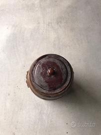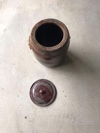 Vendesi antico contenitore in terracotta smaltato, con coperchio. Altezza 42 cm, diametro 29 cm