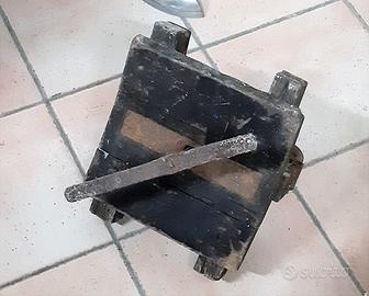 Antico coperchio per chiudere l'asola di ispezione di una botte o tino da vino, in legno e ferro battuto, la misura interna è circa cm 30 x 28