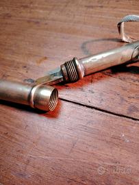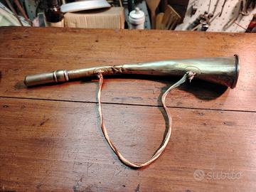 antico corno da richiamoocorno da caccia, probabilmente realizzato in ottone o bronzo. Funzione storica:Utilizzato originariamente come segnale di richiamo durante le battute di caccia o in ambito militare per impartire ordini a distanza. Caratteristiche:Strumento aerofono senza valvole, capace di produrre solo gli armonici naturali. Contesto:Simili strumenti in metallo venivano talvolta considerati cimeli di famiglia o simboli di prestigio. Uso ferroviario:Alcuni modelli simili erano in uso anche da parte dei capotreni come segnale sonoro.