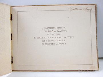 Antico dépliant del COLLEGIO VOLTA DI LECCO Collegio Arcivescovile Alessandro Volta nel XXV° anno dalla sua fondazione. 1902-1927. Brochure ben conservata. 16 pagg. più copertina. Rilegato con cordoncino. All'interno foto del collegio, i suoi fondatori, alunni , Cardinal Ferrari, Monsignor de Giorgi. Dimensioni catalogo 26 x 19 cm C00003026-614