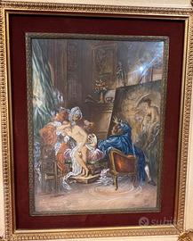 Bellissima copia ad olio del dipinto intitolato "Il modello onesto" (The Honest Model), un guazzo del 1769 realizzato dal pittore francese Pierre-Antoine Baudouin.