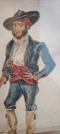 Guappo di Trastevere attribuito a Bartolomeo Pinelli. Inizi 1800. Acquerello su carta. Alto circa 30 cm
