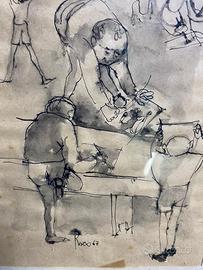 Disegno Originale a China e Acquerello - Firmato "Roco '67" - Scena di Genere / Studio di Figure In vendita interessante opera d’arte originale su carta, datata 1967. Il disegno, realizzato con una tecnica mista di china nera e lavature di acquerello (grigio/seppia), mostra una serie di studi di figure in movimento, catturate con un tratto grafico rapido, sintetico e di grande modernità. L'opera richiama lo stile dell'illustrazione europea del dopoguerra e dei grandi maestri del segno del Novecento Misure 50x35 cm