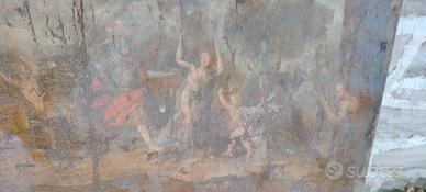 olio su tela che rappresenta forse Vulcano, Marte, Venere e Cupido. Misure cm 100 per 65. Presenta molte cadute di colore.