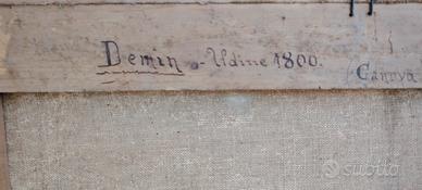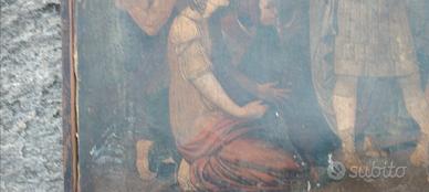 Veturia e Volumnia supplicano Corionano - olio su cartone riportato su tela attribuito a De Min, pittore neoclassico della prima meta' del 1800 influenzato da Canova. Dimensioni cm 66 per 46. Presenta cadute di colore.